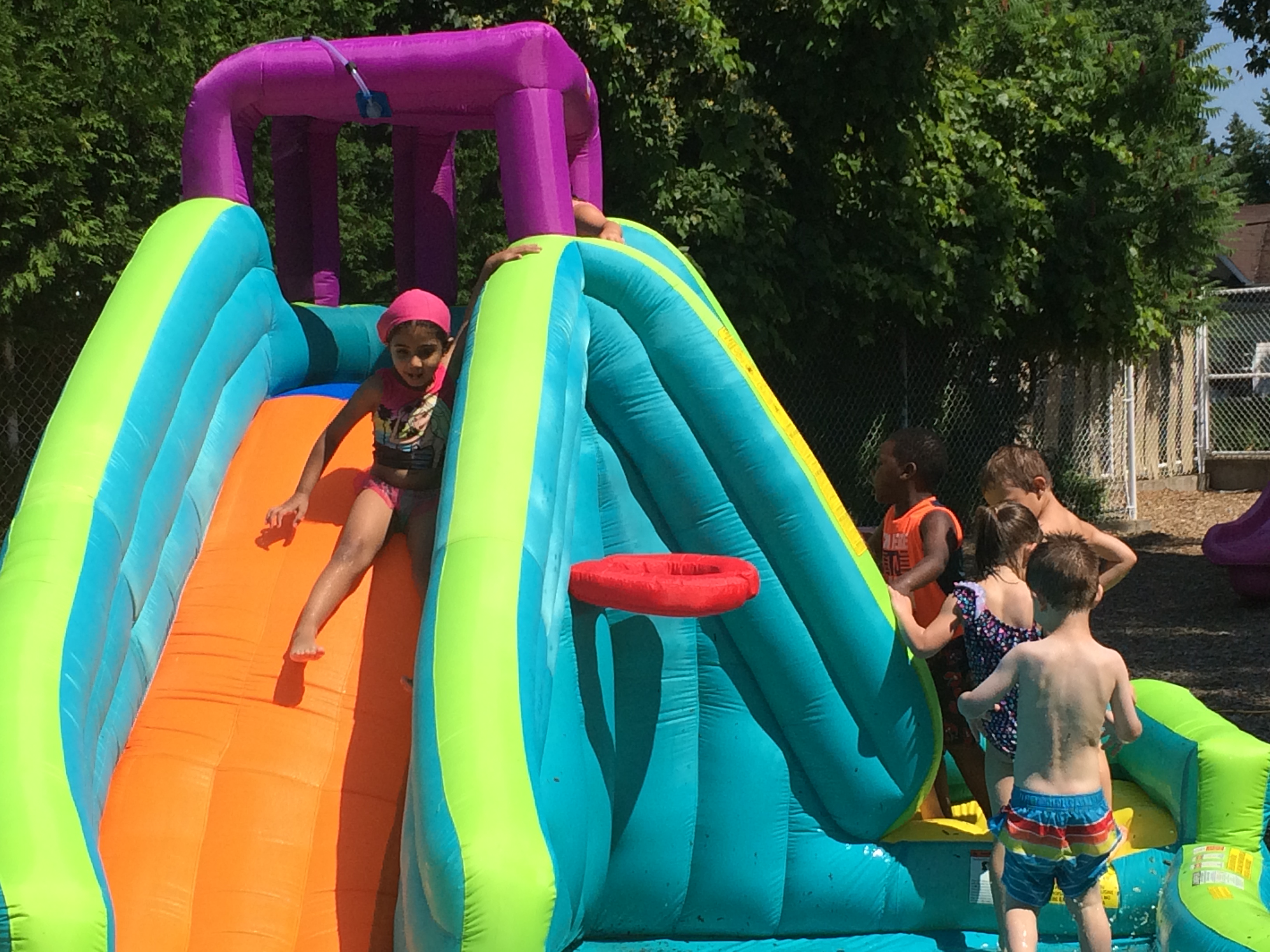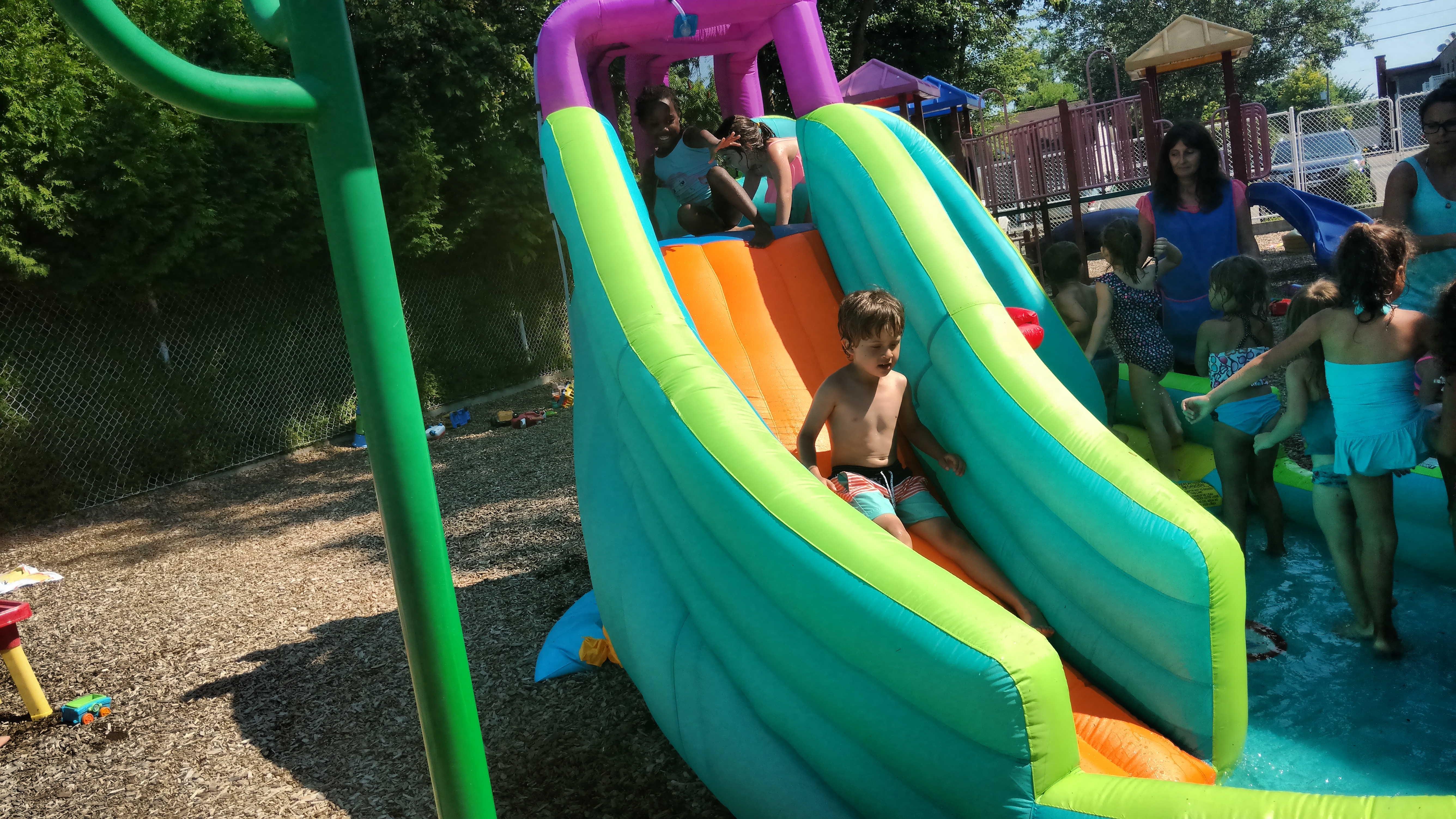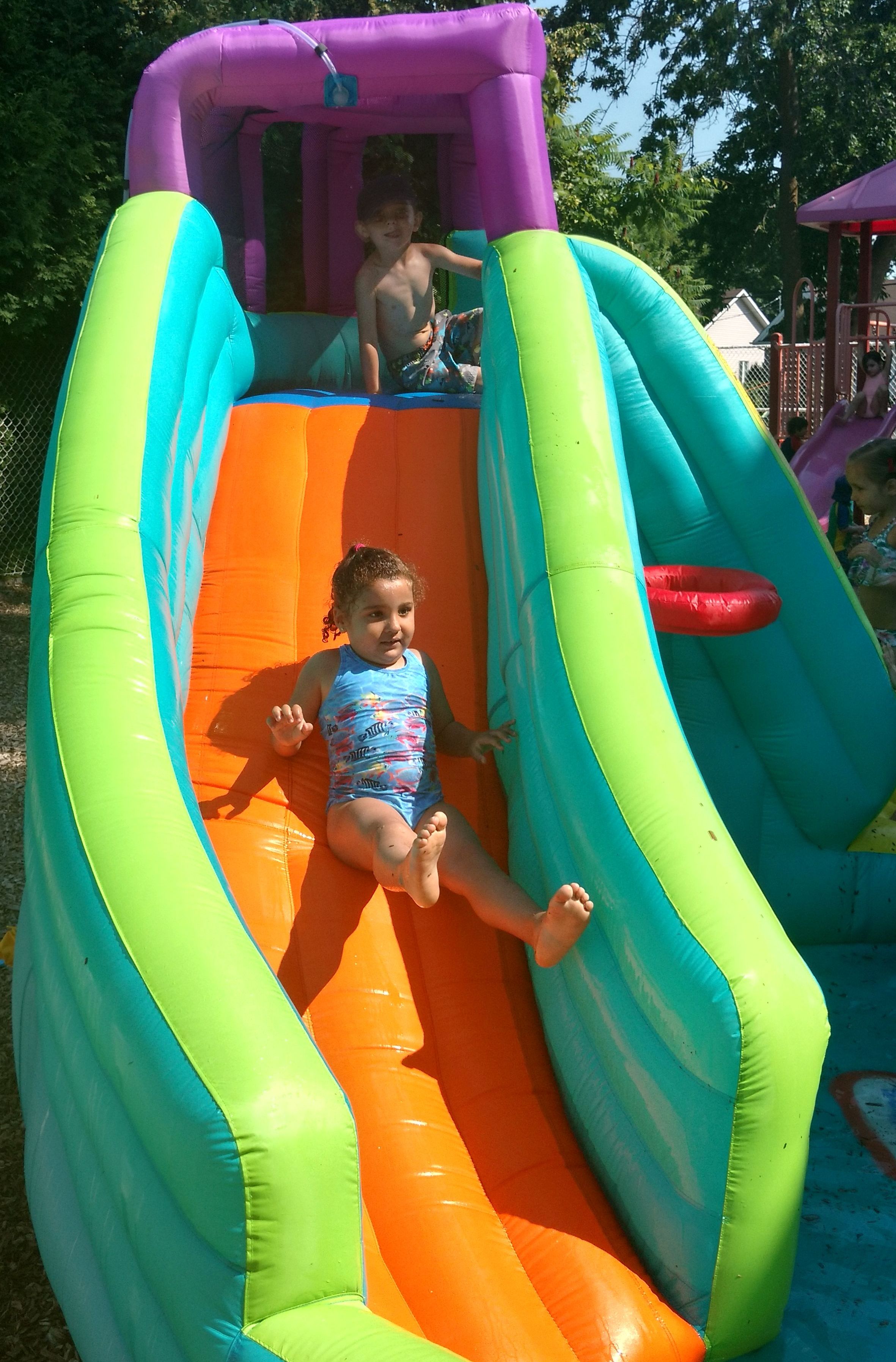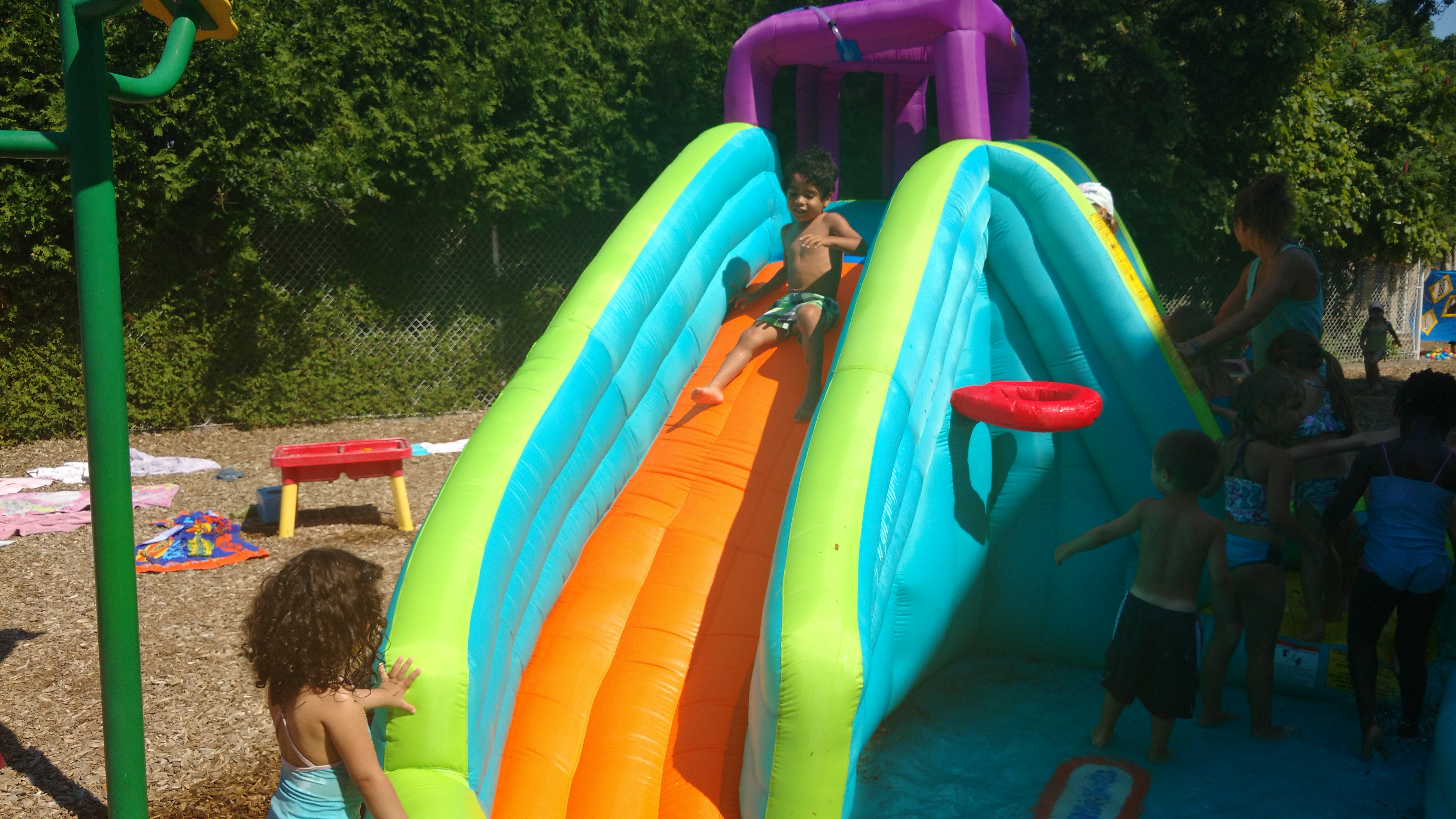 Les enfants se sont bien amusés dans les différents coins de jeux d'eau qu'on a installé pour eux. Merci à papa de Aïcha et Yassine qui a volontairement prêté le module gonflable avec une glissade d'eau.