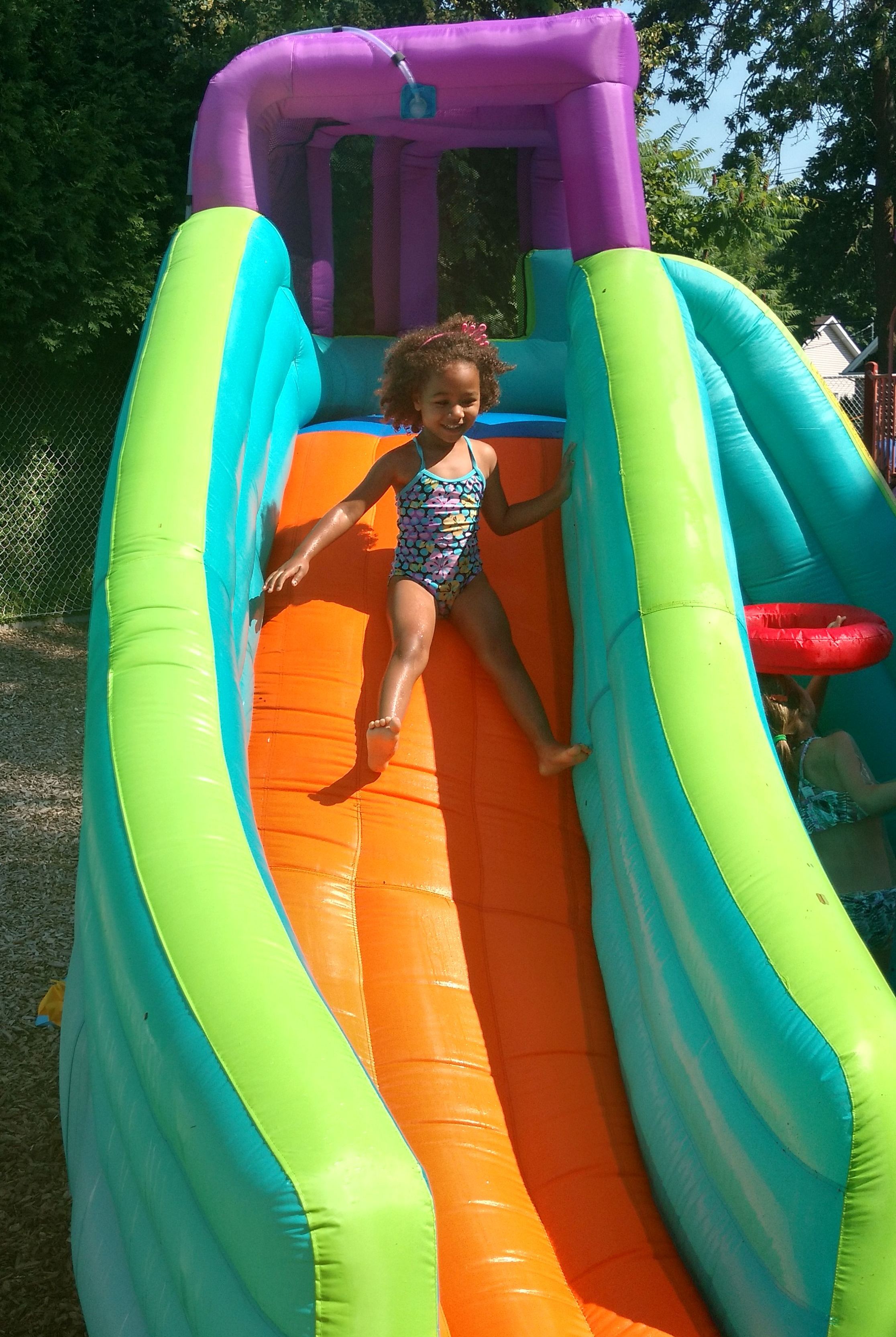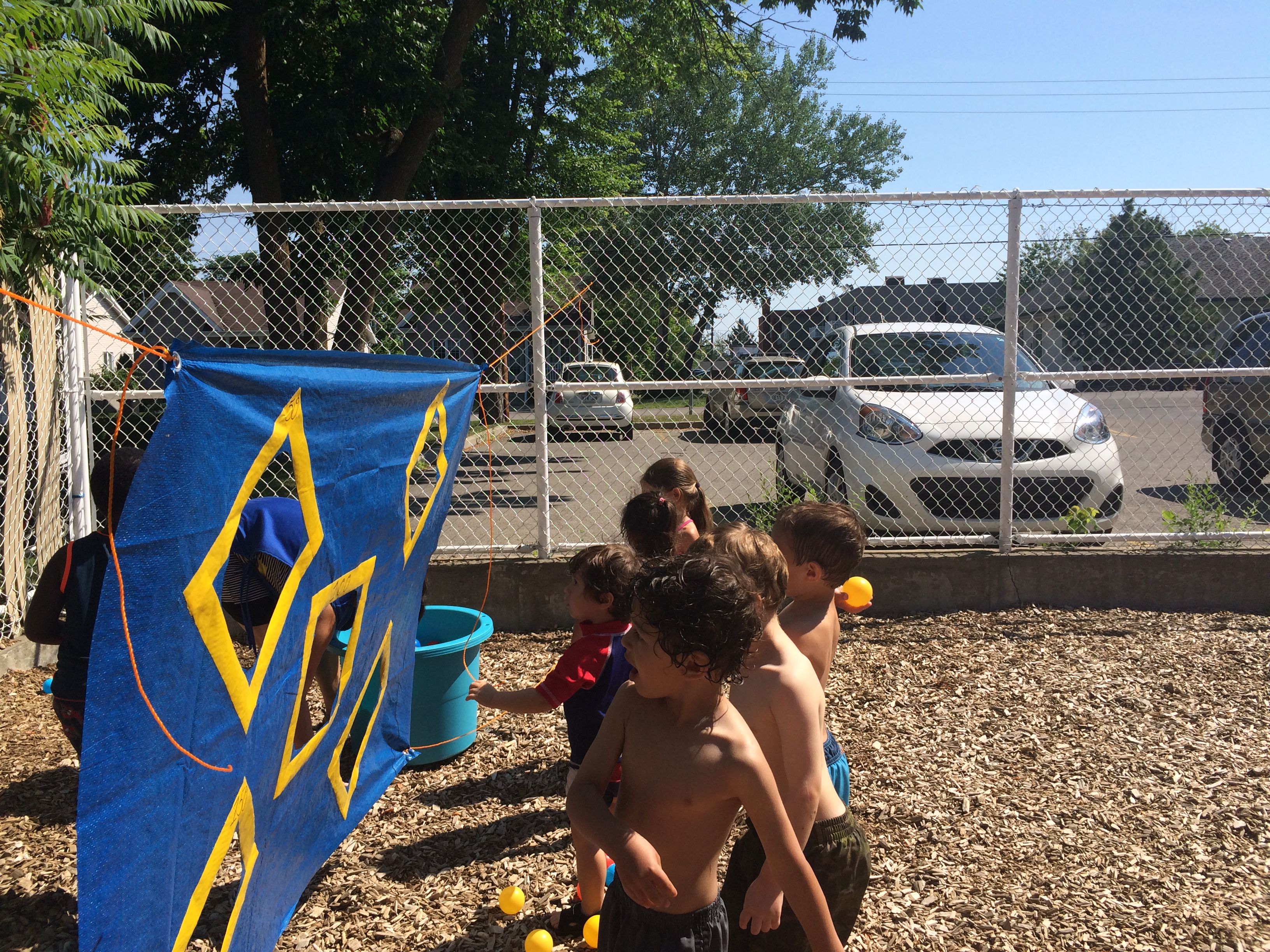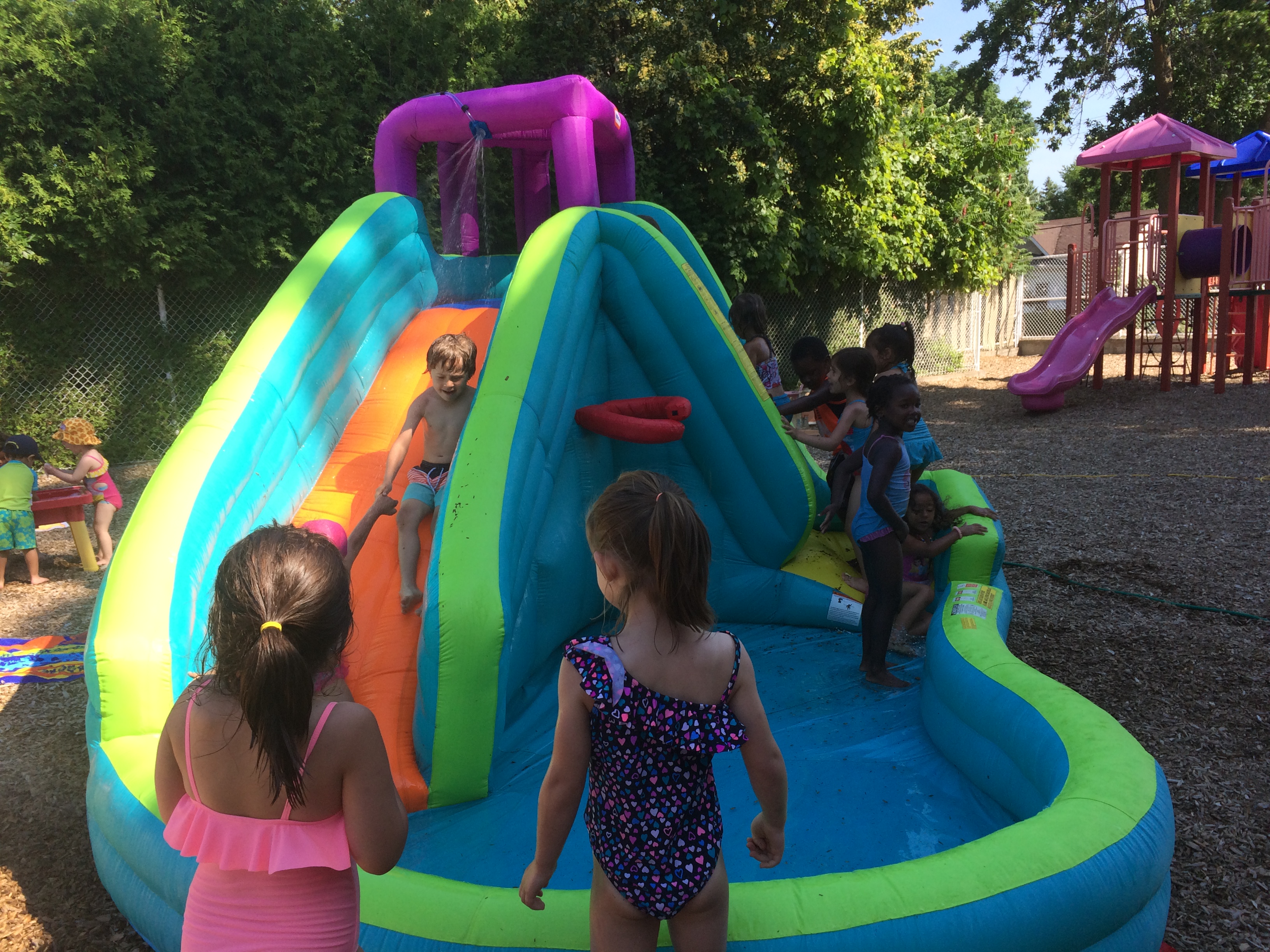 Les enfants se sont bien amusés dans les différents coins de jeux d'eau qu'on a installé pour eux. Merci à papa de Aïcha et Yassine qui a volontairement prêté le module gonflable avec une glissade d'eau.