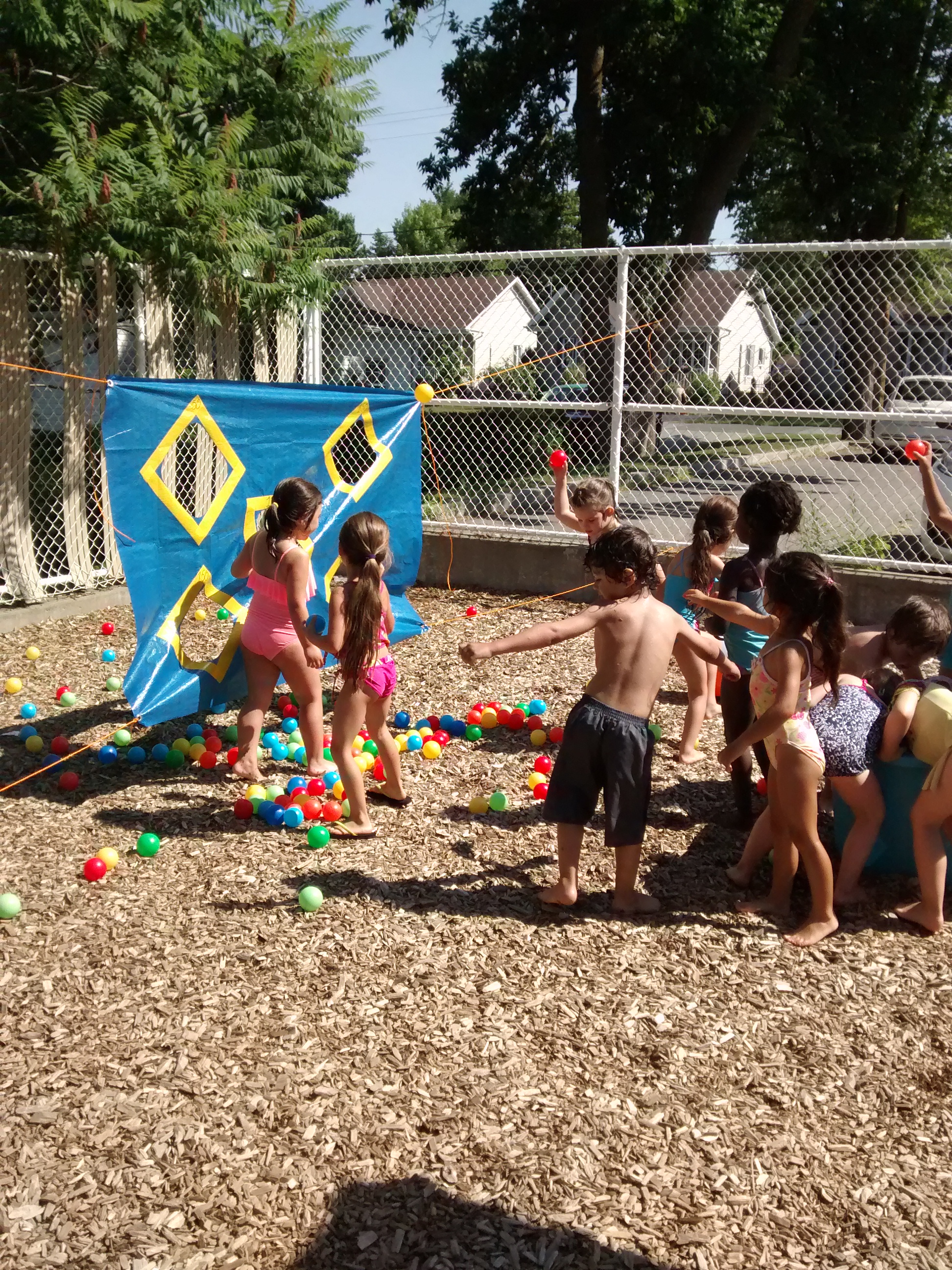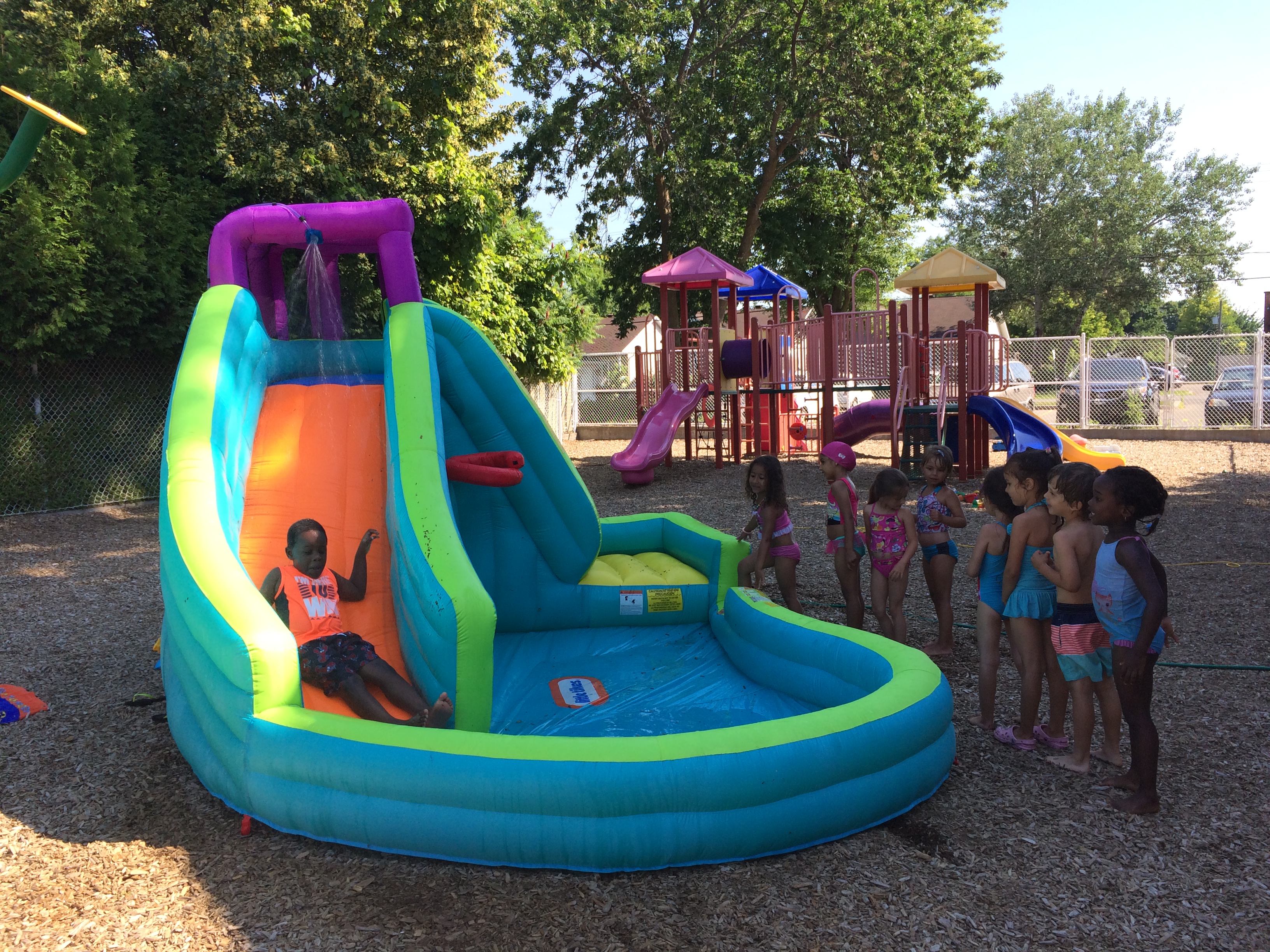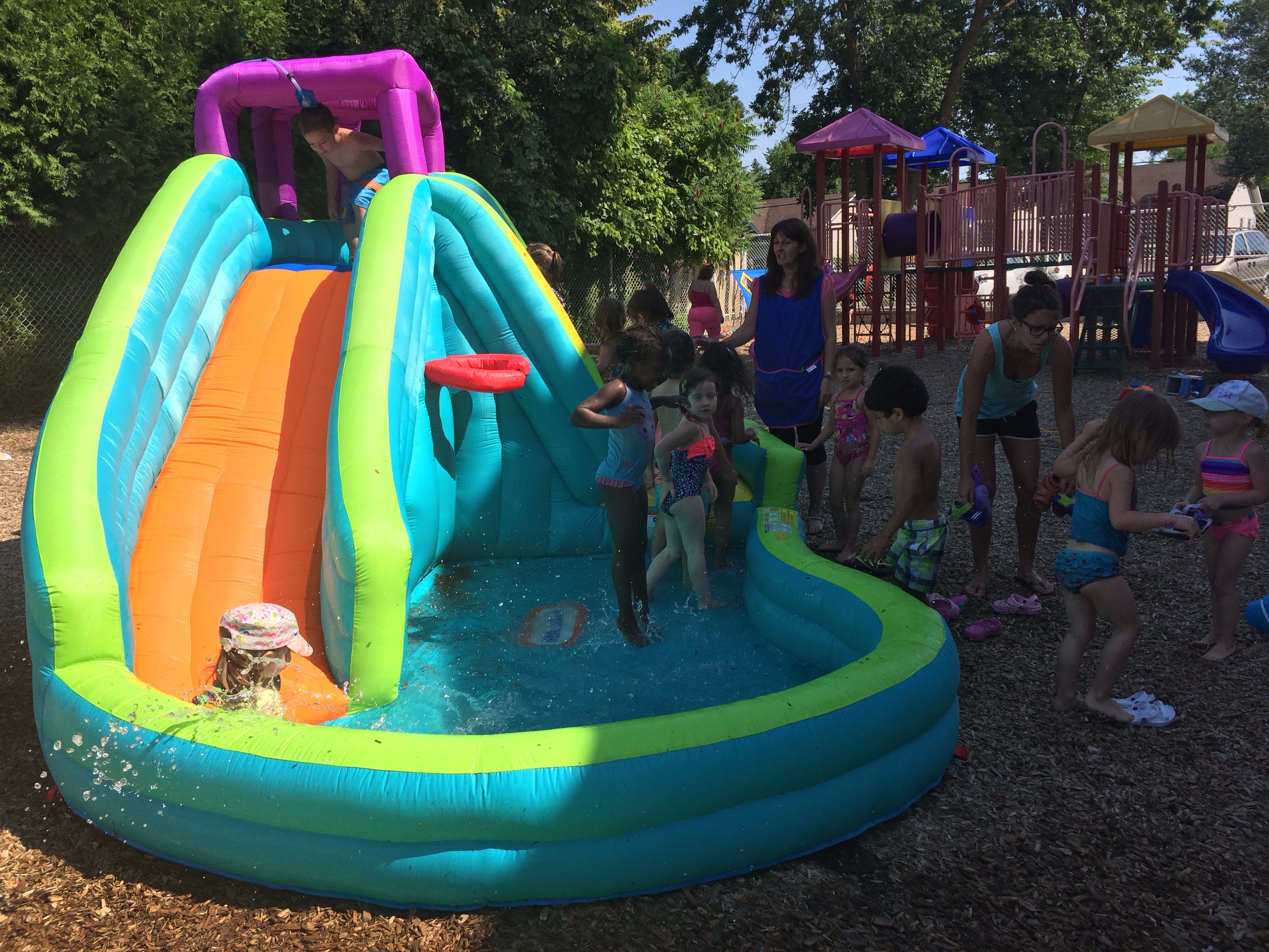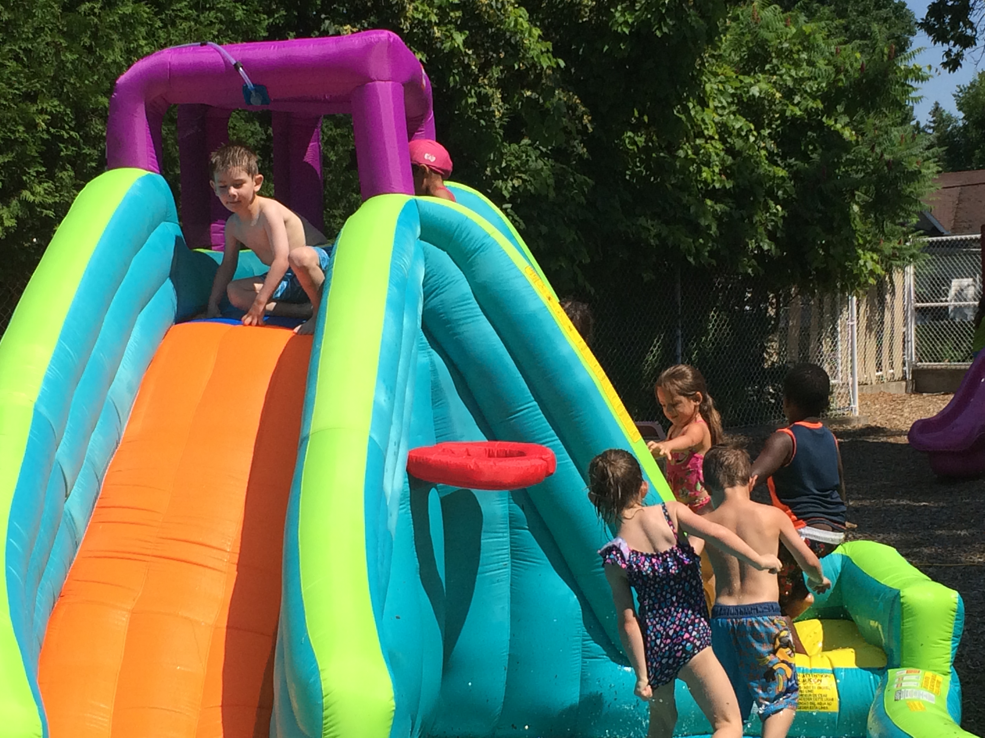 Les enfants se sont bien amusés dans les différents coins de jeux d'eau qu'on a installé pour eux. Merci à papa de Aïcha et Yassine qui a volontairement prêté le module gonflable avec une glissade d'eau.