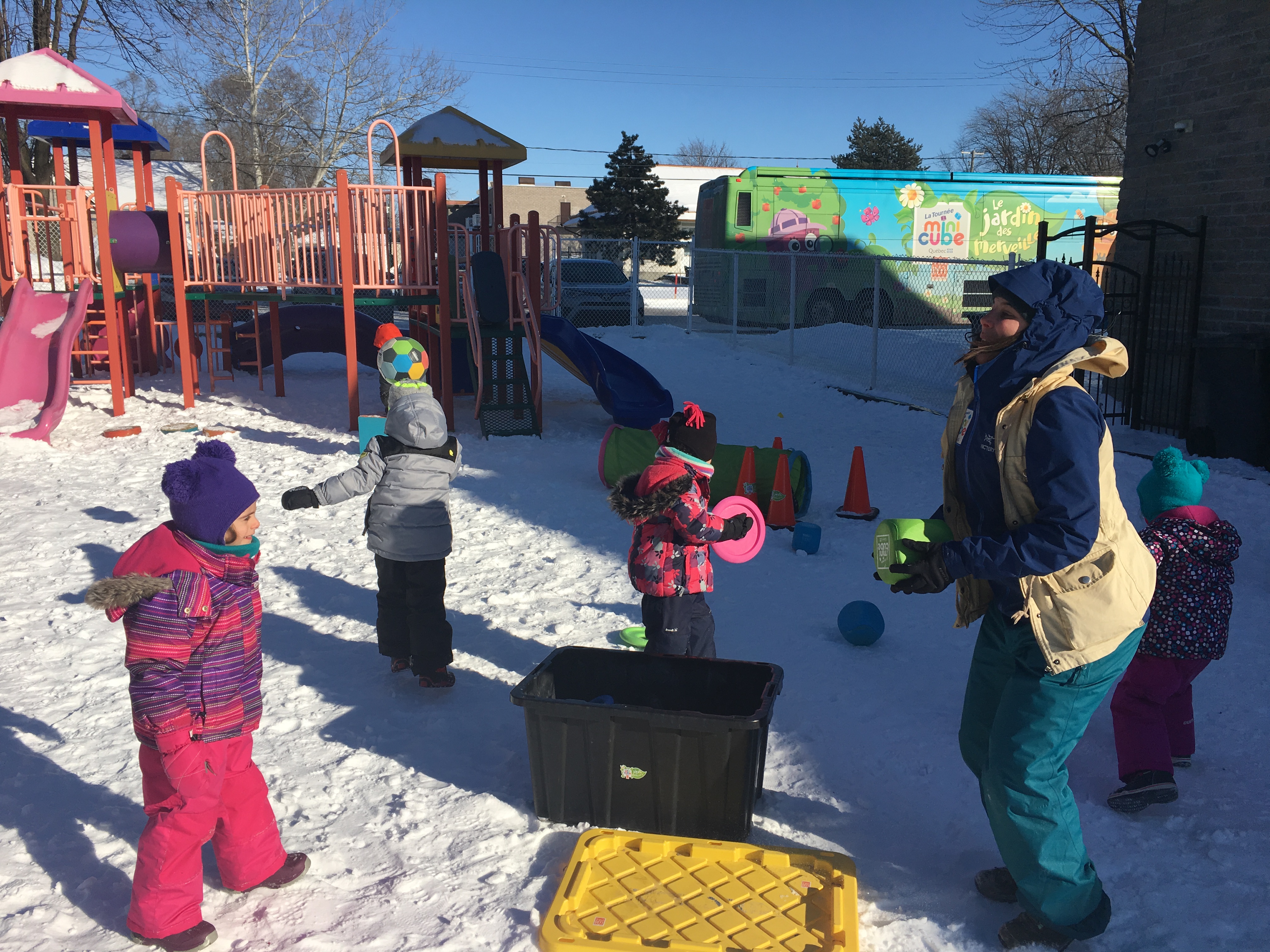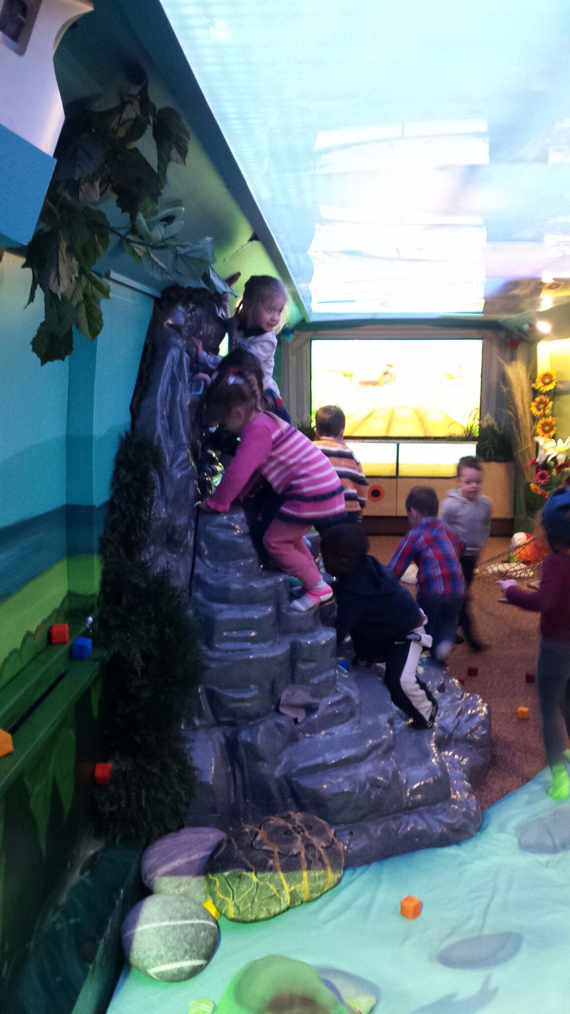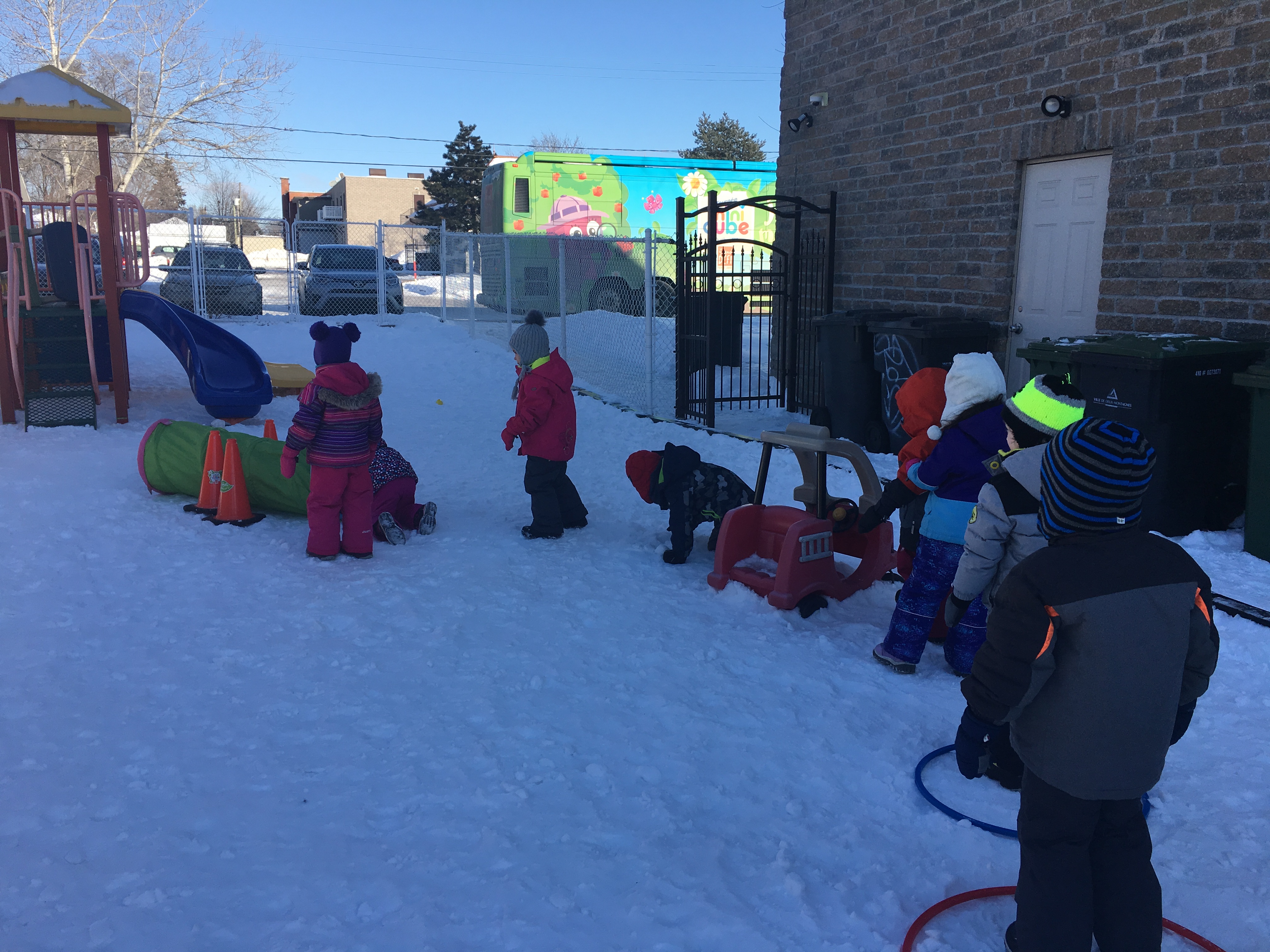 Tour à tour, les groupes d'enfants de 18 mois à 5 ans, accompagnés par leur éducatrice et une animatrice très dynamique ont participé à plusieurs activités physiques, dont Chanson et parcours intérieur pour les plus petits ou Chanson et parcours extérieur pour les plus grands, l'atelier exploration sensorielle Je mange avec mes sens pendant l'heure du dîner et 30 minutes de jeu libre actif dans l'autobus Jardin des Merveilles.