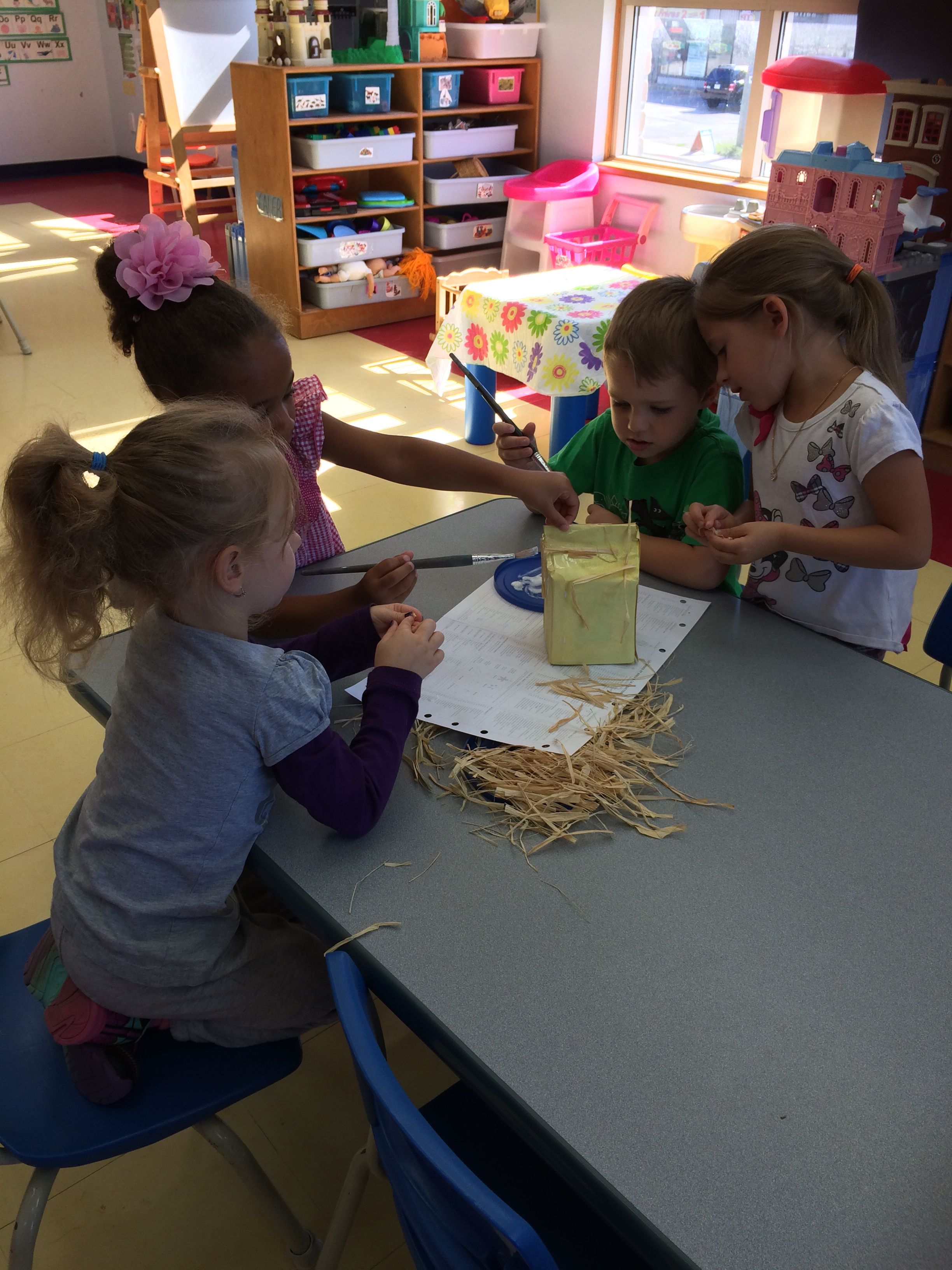 The first liitle pig built a straw house: