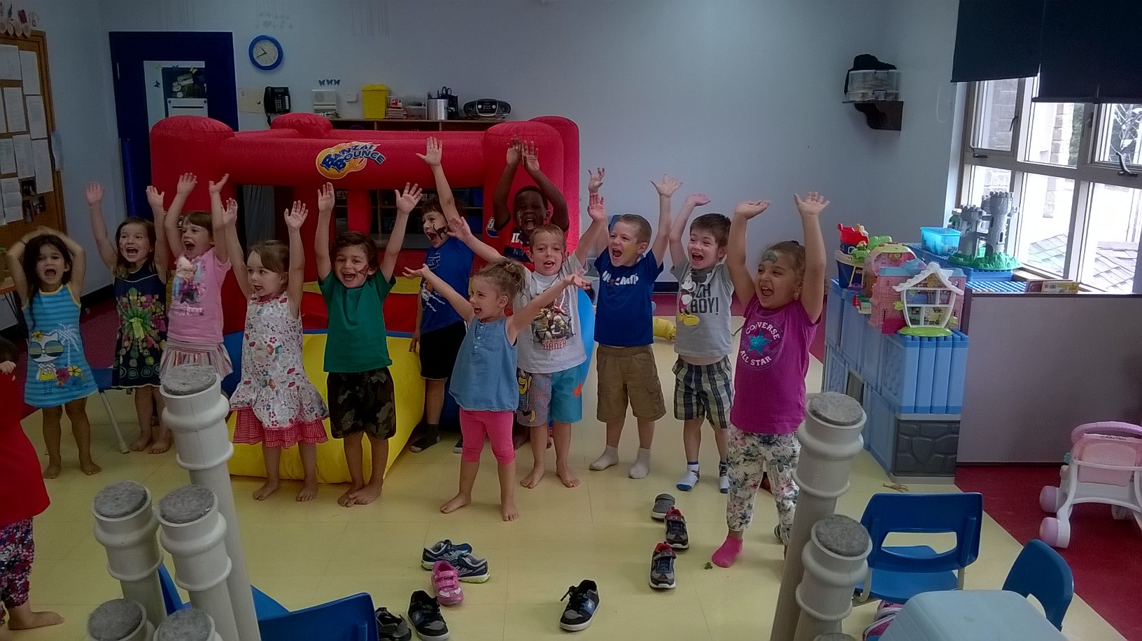 Du beau maquillage et un module gonflable pour sauter aident à garder la bonne humeur.