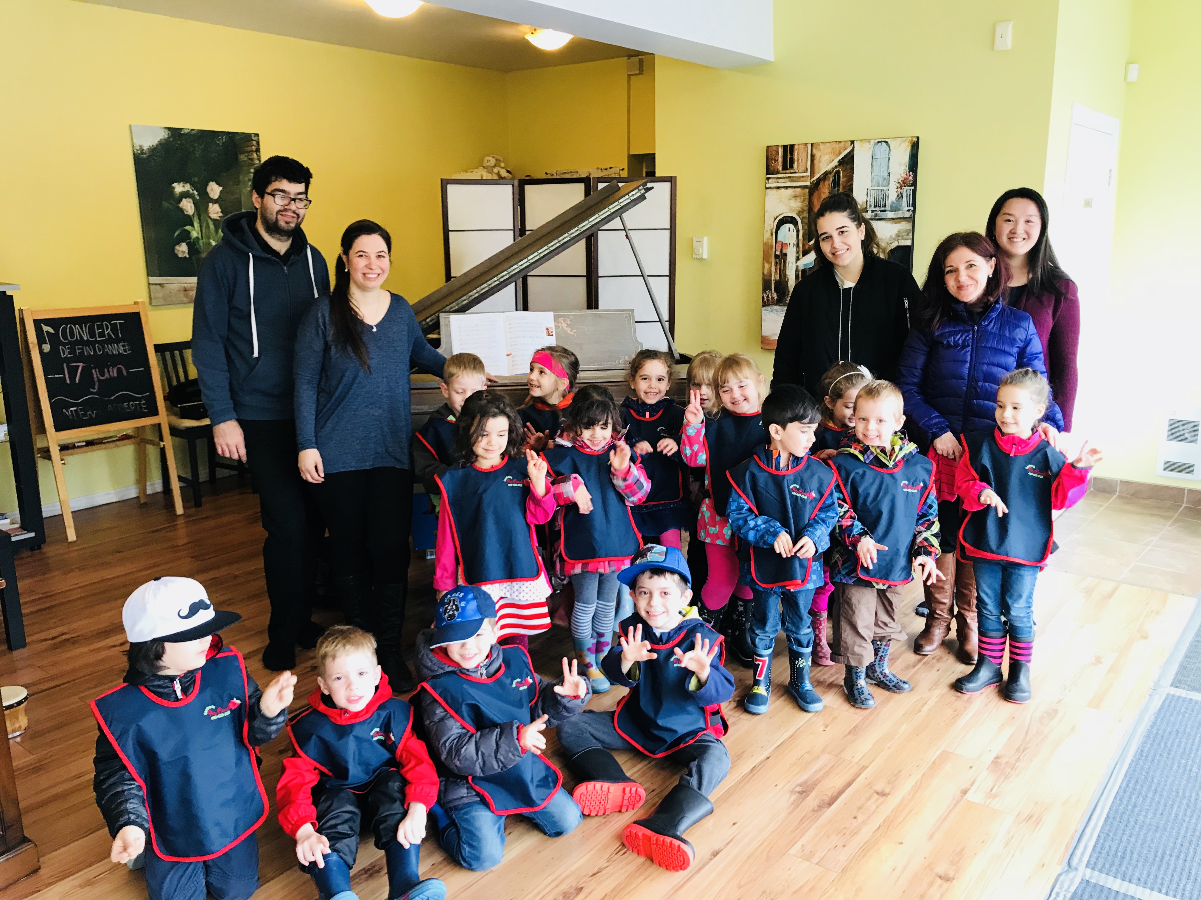 Les enfants de 4-5 ans du groupe des Papillons ont visité l'École de musique Lilianne. Ils ont eu l'occasion et le plaisir d'apprendre sur les différents instruments de musique: le piano, la guitare, le ukulélé, le triangle, les tambourins et la baterie, le violon et beaucoup d'autres. Ani, la directrice de l'école, a montré aux enfants ce qu'il y a en dedans d'un piano qui fait produire les sons. Elle a aussi fait un jeu de devinette musicale avec les enfants. Ils essayaient de deviner quelle chanson elle jouait au piano. Les enfants ont aussi fait un test pour voir si Ani pouvait jouer des chansons qu'ils nommaient :)